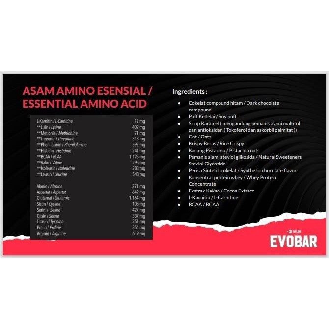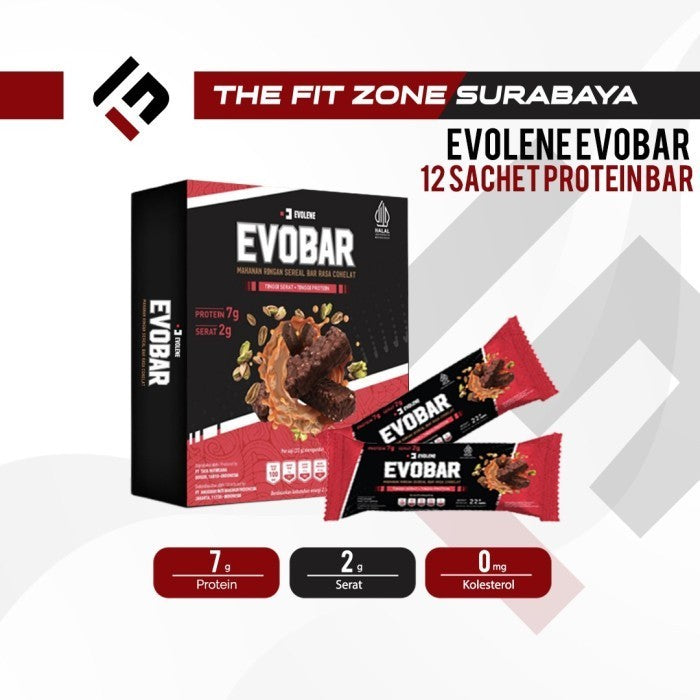 EVOBAR adalah snack sehat nikmat tinggi protein dengan coklat full. EVOBAR : Snack sehat tinggi protein yang diperkaya L-Carnitine dibalut dengan full coklat gak setengah-setengah.