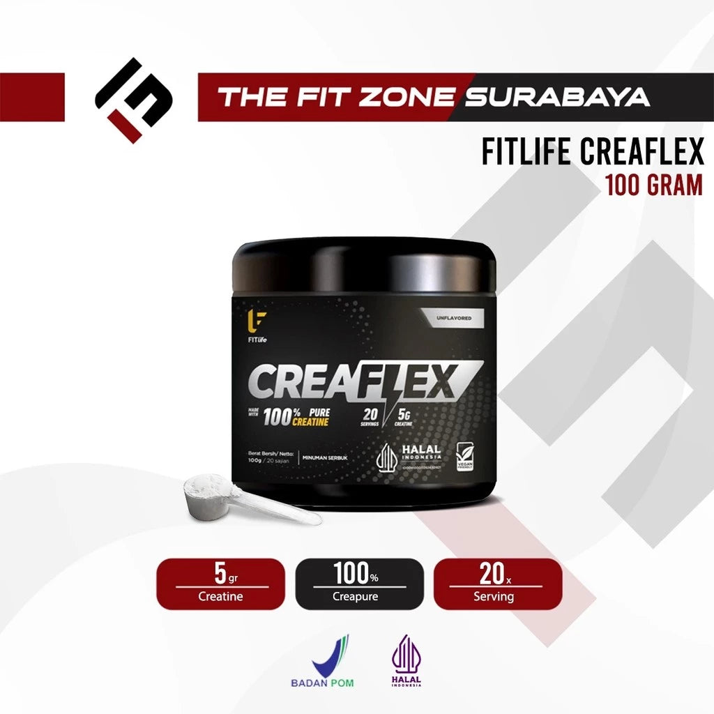 FITLIFE Creaflex 100 Gram 20 Servings Creatine Monohydrate Suplemen Fitness Pharmateucial Grade