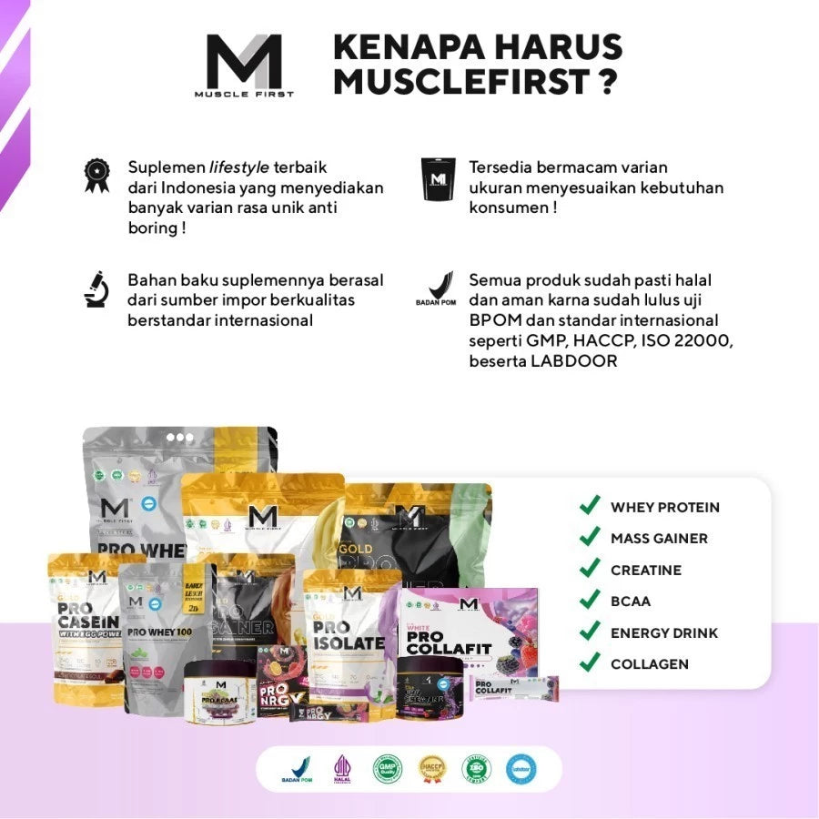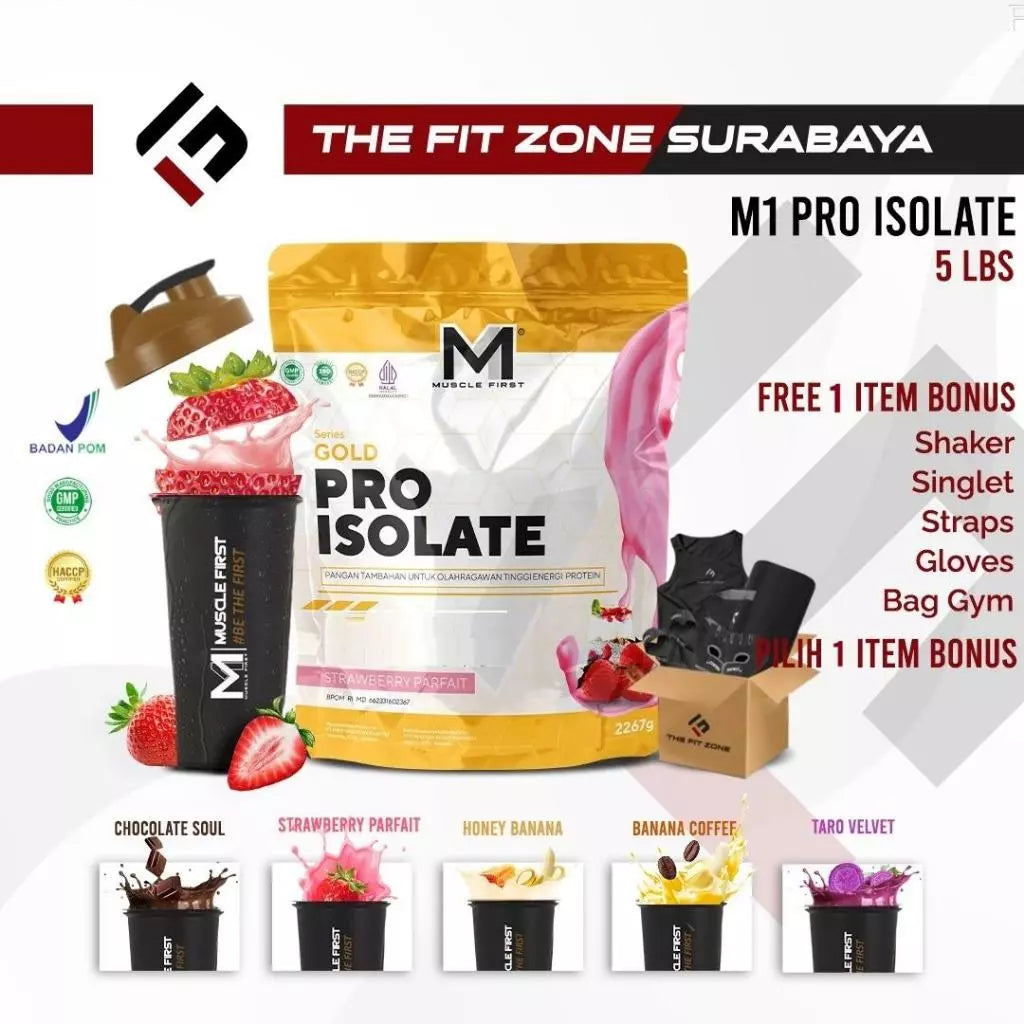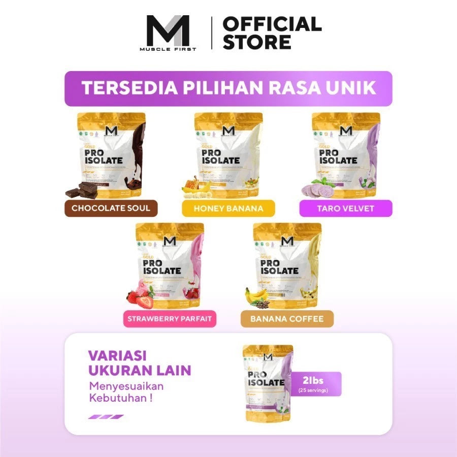 Pro Isolate dari Muscle First merupakan whey protein murni dengan daya serap 90% yang mampu dengan efektif menambah asupan protein harian sehingga membuat pertumbuhan otot menjadi sempurna. Dengan 110 kalori per sajiannya, Pro Isolate sangat cocok bagi anda yang ingin menjaga bentuk badan ideal. Varian rasa yang unik dan lezat dari M1 selalu siap menemani hidup sehatmu.