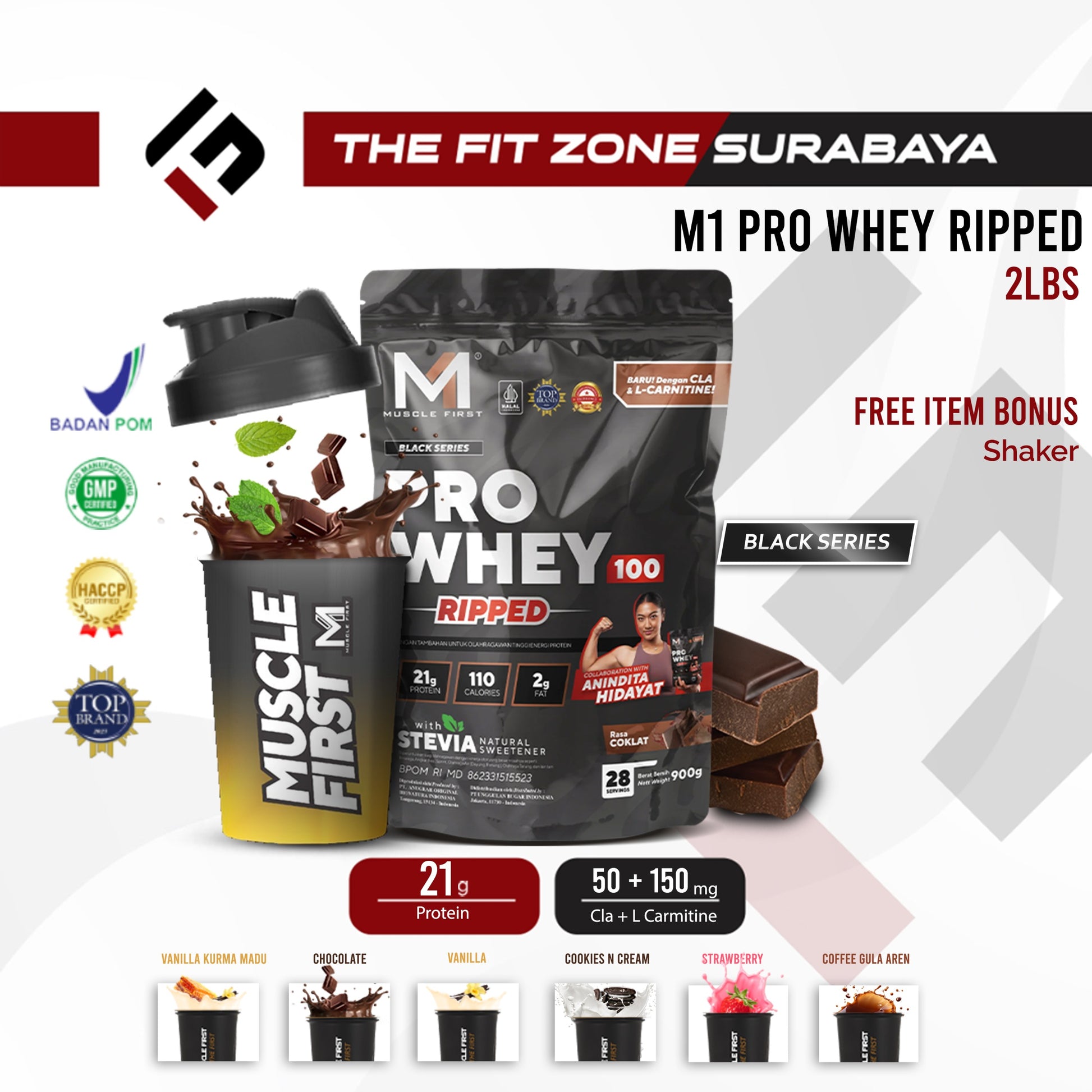 M1 MuscleFirst Pro Whey 100 RIPPED 2 Lbs 900 Gram Whey Protein + CLA & L Carnitine