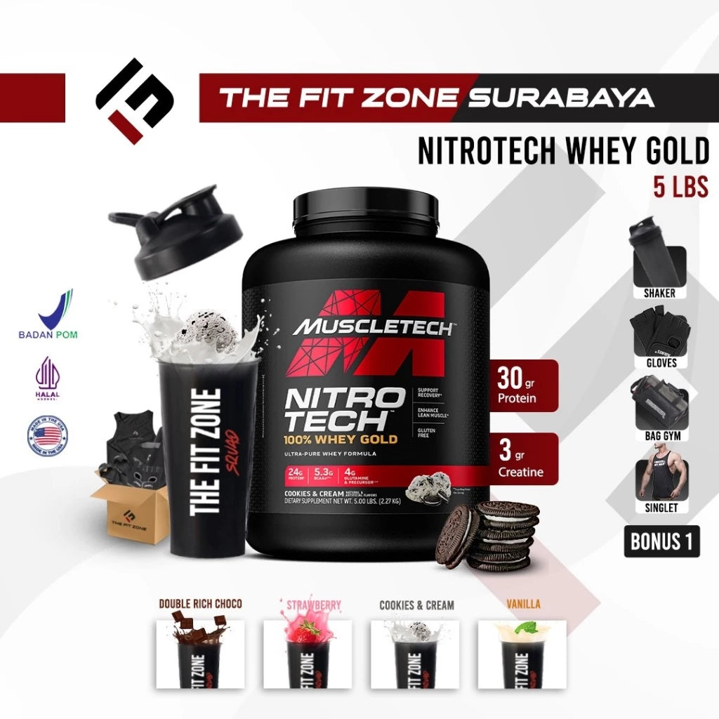 NITRO-TECH 100% WHEY GOLD menggunakan proses mikrofiltrasi dingin yang superior untuk menjamin protein whey berkualitas lebih tinggi. Dikombinasikan dengan profil rasa penghargaan, NITRO-TECH 100% WHEY GOLD sama baiknya untuk selera Anda seperti pada otot Anda!
